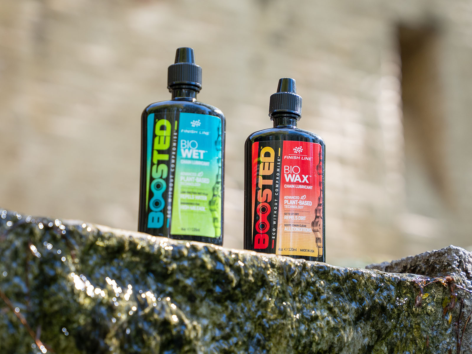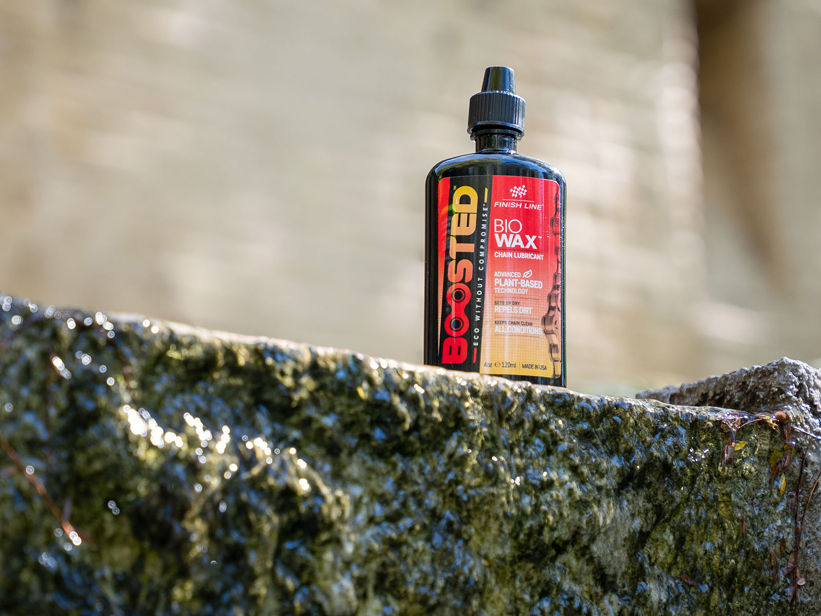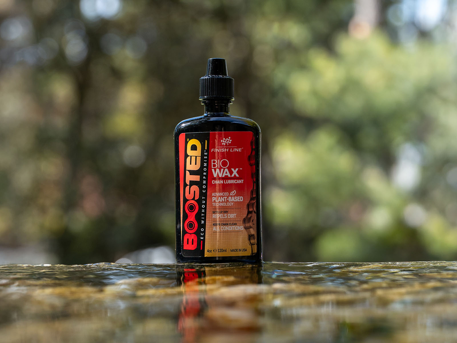 BOOSTED Bio Wax to zaawansowany, roślinny smar do łańcuchów rowerowych Finish Line, zaprojektowany z myślą o wysokiej wydajności i ochronie środowiska.