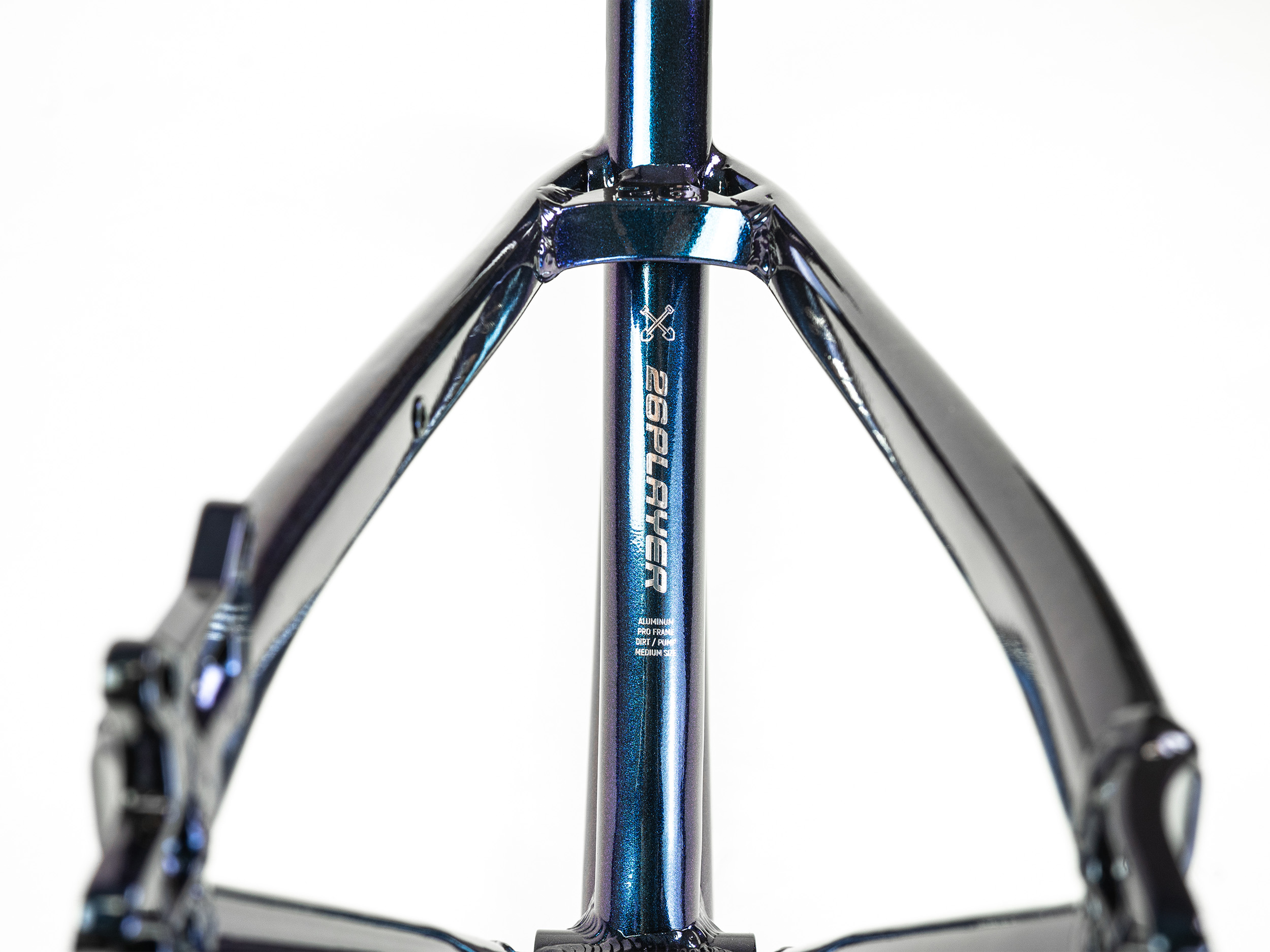 Two6Player Pro jest wyposażony w zintegrowany napinacz łańcucha, główkę ramy przygotowaną pod gyro oraz solidny łącznik seatstay’a. Jego geometria jest idealnie dostrojona do współczesnych wymagań dirt jumpingu i jazdy na pumptracku.