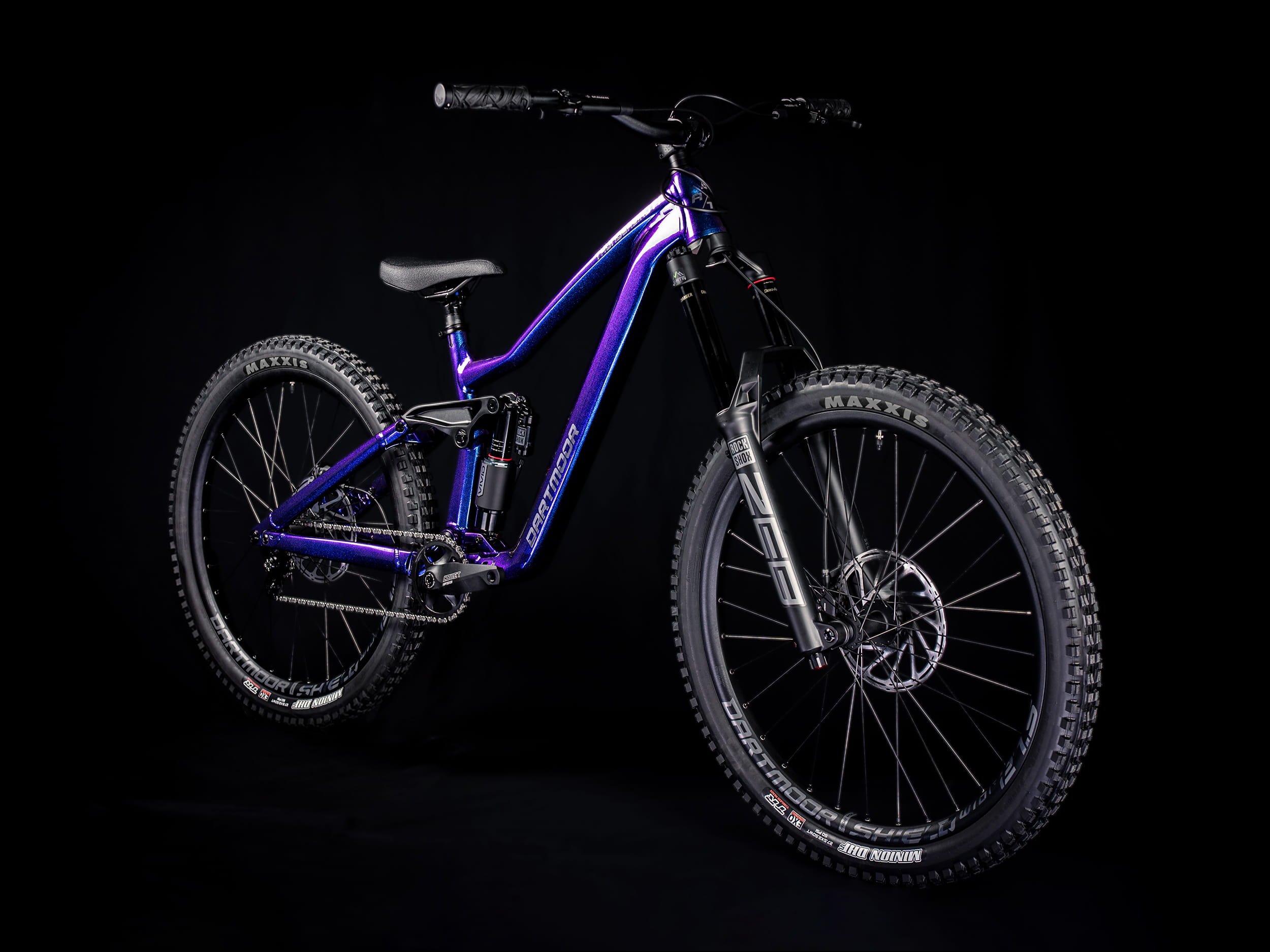 Koła zbudowano na obręczach Dartmoor Shield Wide, tylnej piaście Boost Expert Singlespeed, oraz oponach Maxxis Minion DHF w topowej wersji MaxxTerra EXO+ 120TPI to gwarancja przyczepności i trwałości sprawdzonej przez freeriderów na całym świecie.