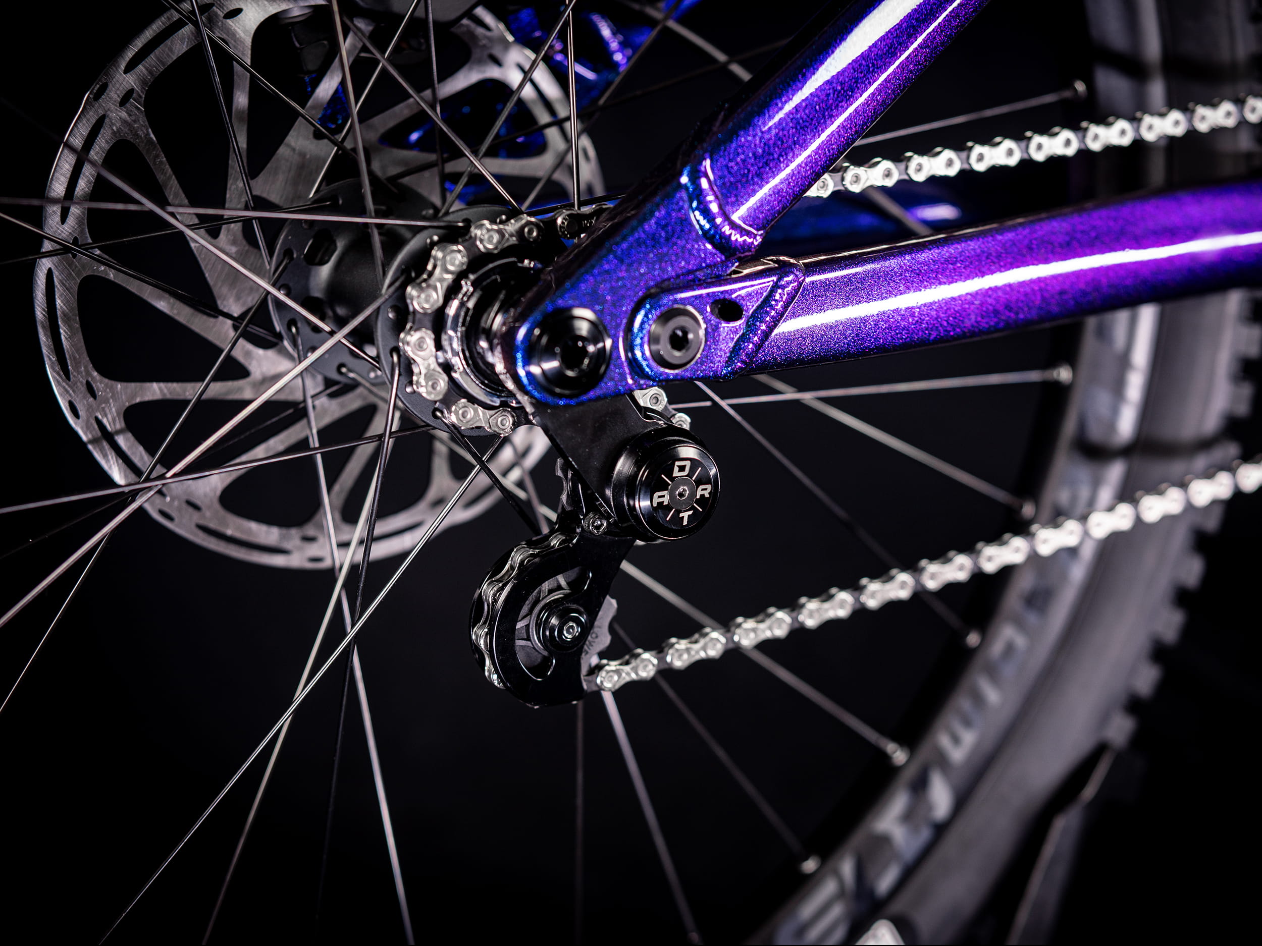 Rama w kolorze Cosmic, oparta na 27.5 calowych kołach, zapewnia idealną równowagę pomiędzy zwinnością a kontrolą. Amortyzator RockShox Zeb Select ze skokiem 190 mm i tłumikiem Charger RC, pochłania największe dropy, a z tyłu RockShox Vivid Base dba o płynność i przewidywalność reakcji zawieszenia.