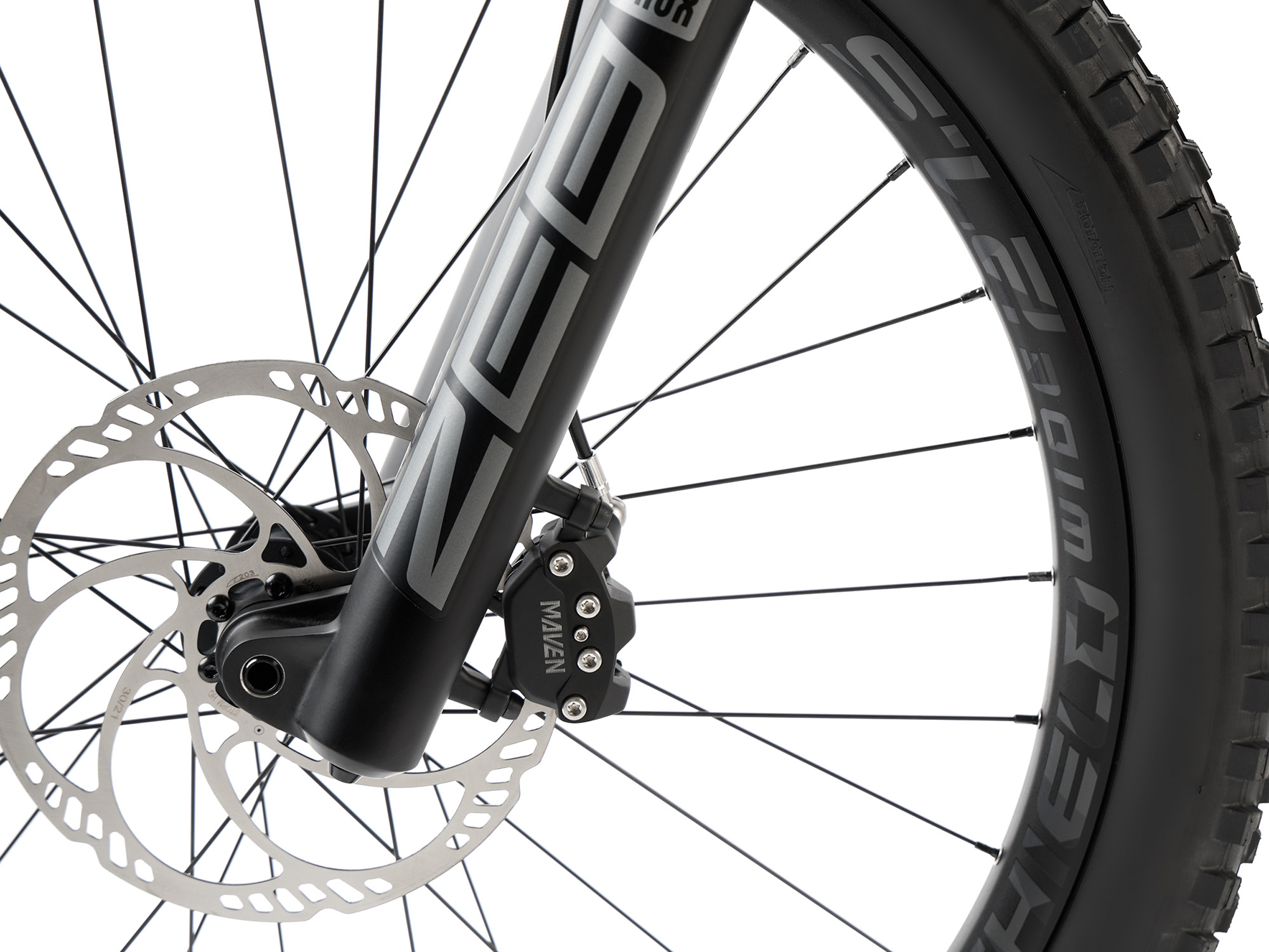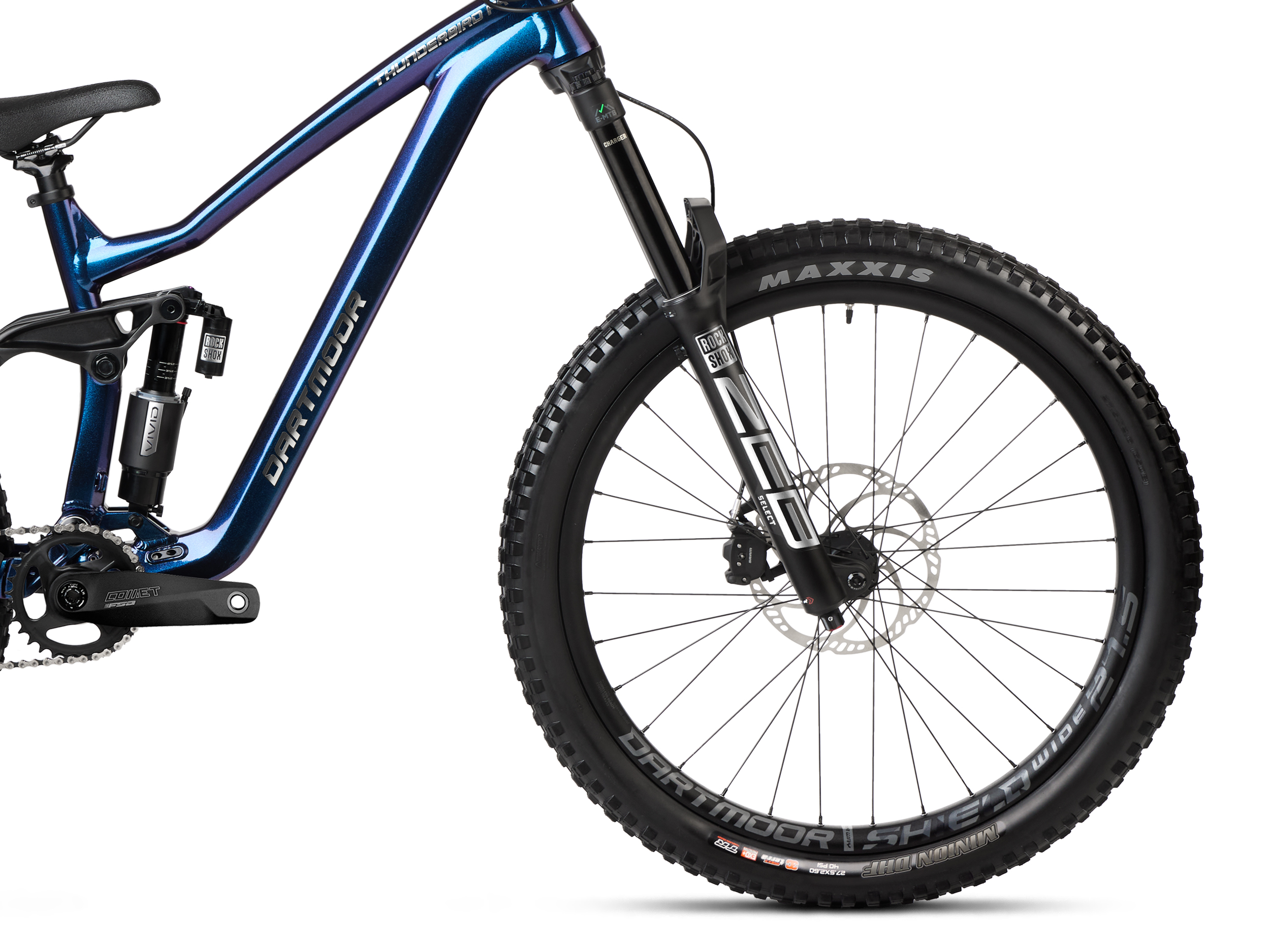 Kokpit oparty na nowym mostku Dartmoor Thunder CNC i kierownicy Viper Pro 35 mm z aluminium 7050 zapewnia maksymalną sztywność i kontrolę. Za skuteczne hamowanie odpowiadają hamulce SRAM Maven Base - z mocą, której po prostu nie zabraknie.