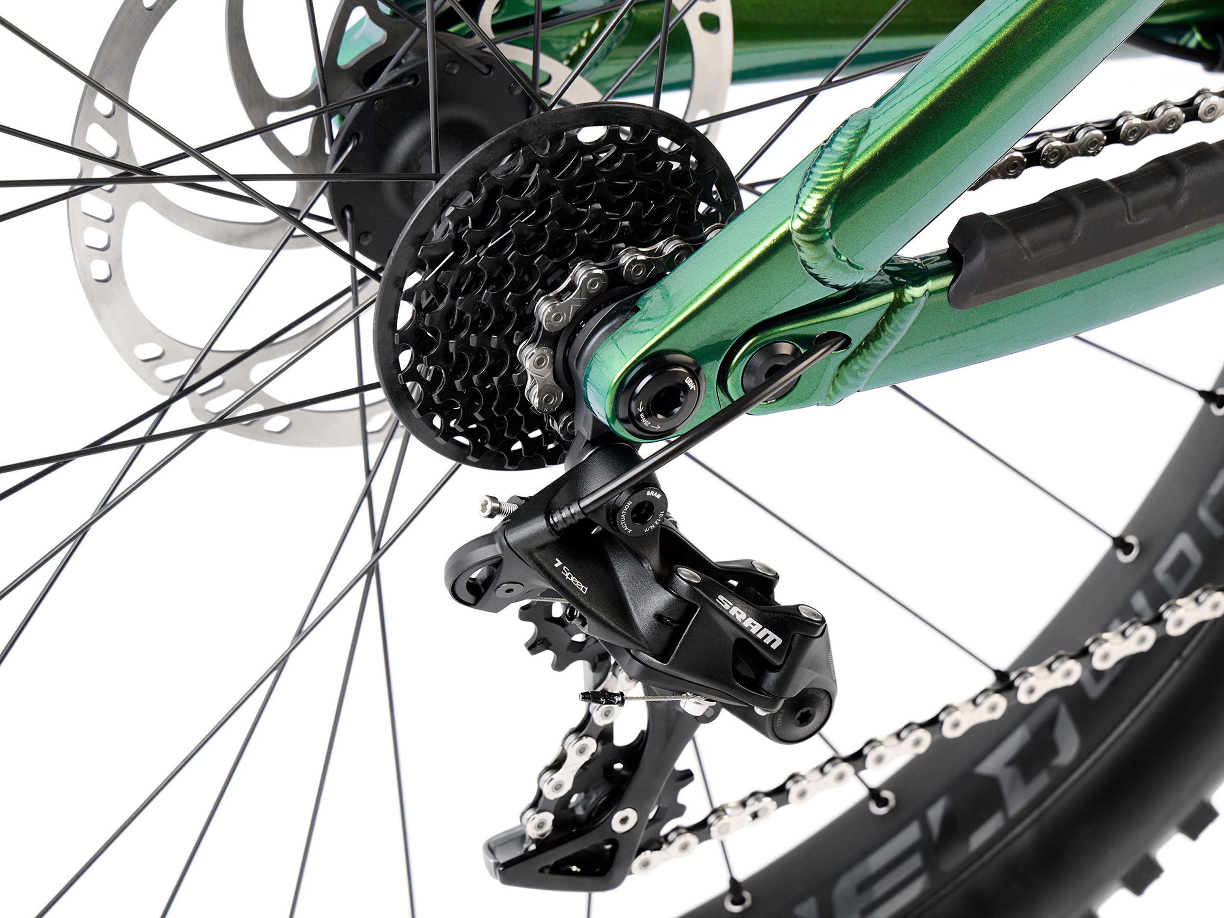 Napęd SRAM GX DH 7-biegowy z kasetą 11-25T utrzymuje krótkie i precyzyjne przełożenia - idealne do jazdy po bikeparku i freeride’owych linii w stylu DH. nowa wersja korby FSA Comet Heavy Duty zapewnia błyskawiczne przeniesienie mocy oraz idealną sztywność przy każdym ruchu korby.