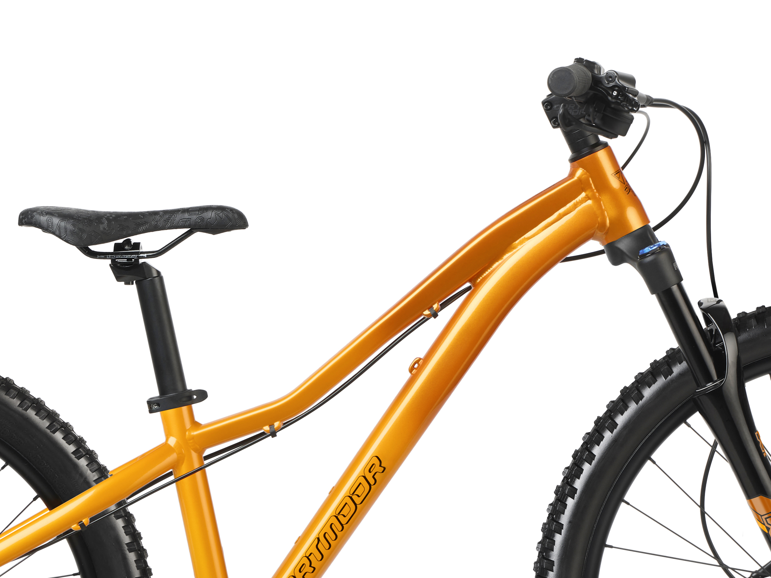 Amortyzator powietrzny X-Fusion RC32 ze skokiem 120 mm, zapewnia płynną i przewidywalną jazdę, a hamulce hydrauliczne Tektro z krótkimi klamkami gwarantują bezpieczeństwo i pełną kontrolę. Zestaw kół oparty na obręczach Dartmoor Raptor i oponach Kenda Amrak pozwala jeździć jak prawdziwy MTB - tylko w mniejszej wersji.