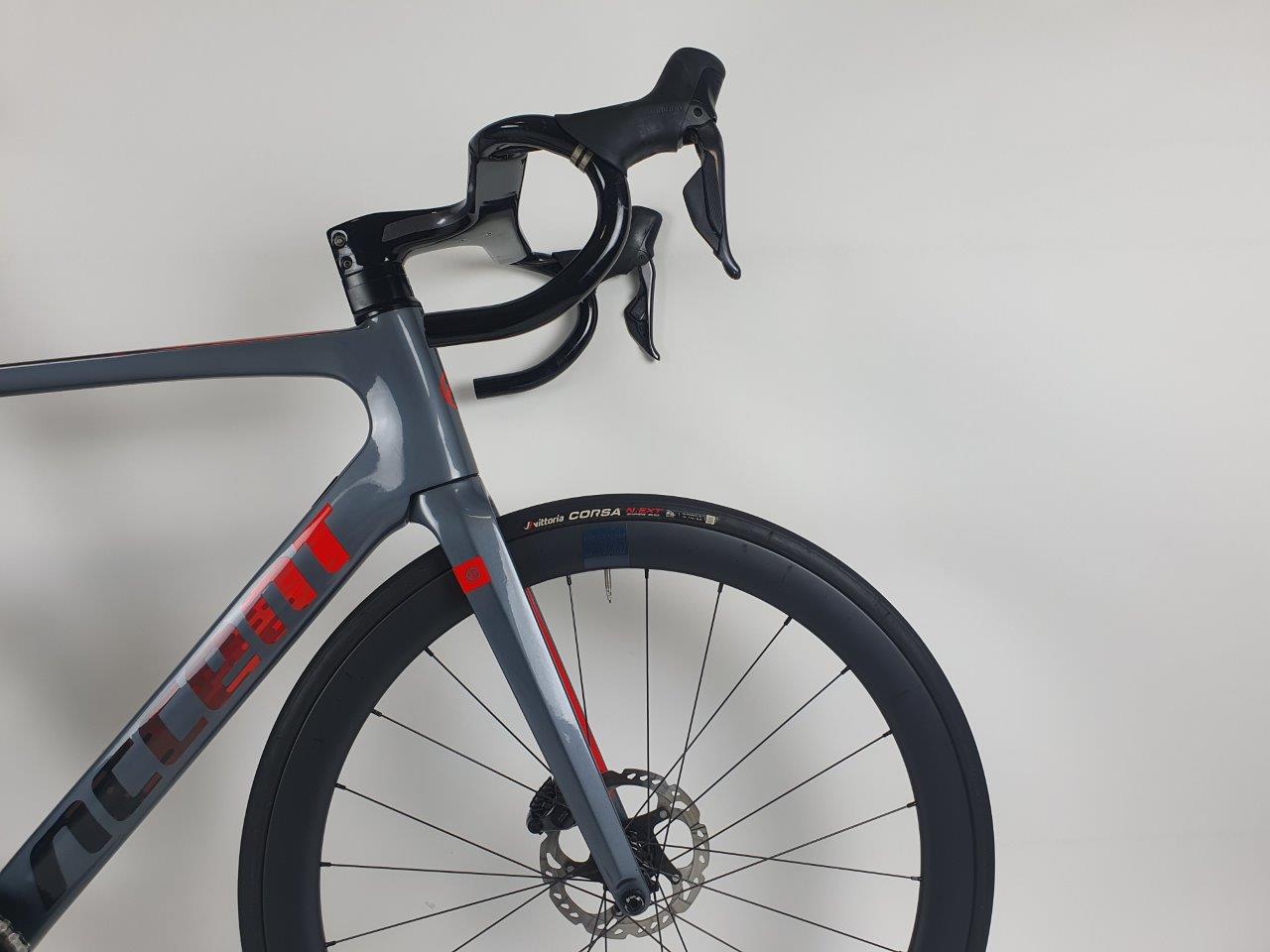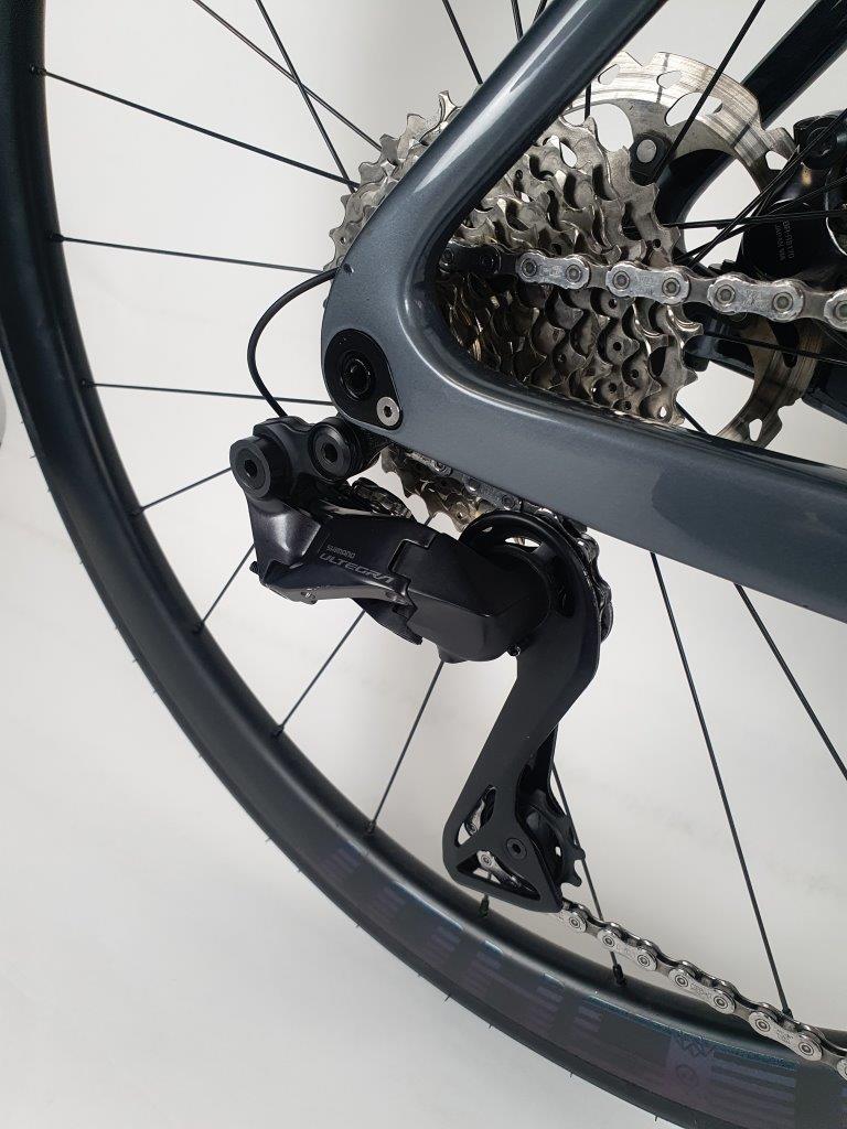 Rower Cyclone Carbon Disc racing grey ULTEGRA 12 rzędów Di2, rozmiar L (po testach, stan bardzo dobry, minimalne ślady użytkowania, nowe owijki, nowe opony, kabel w komplecie, bez pedałów).