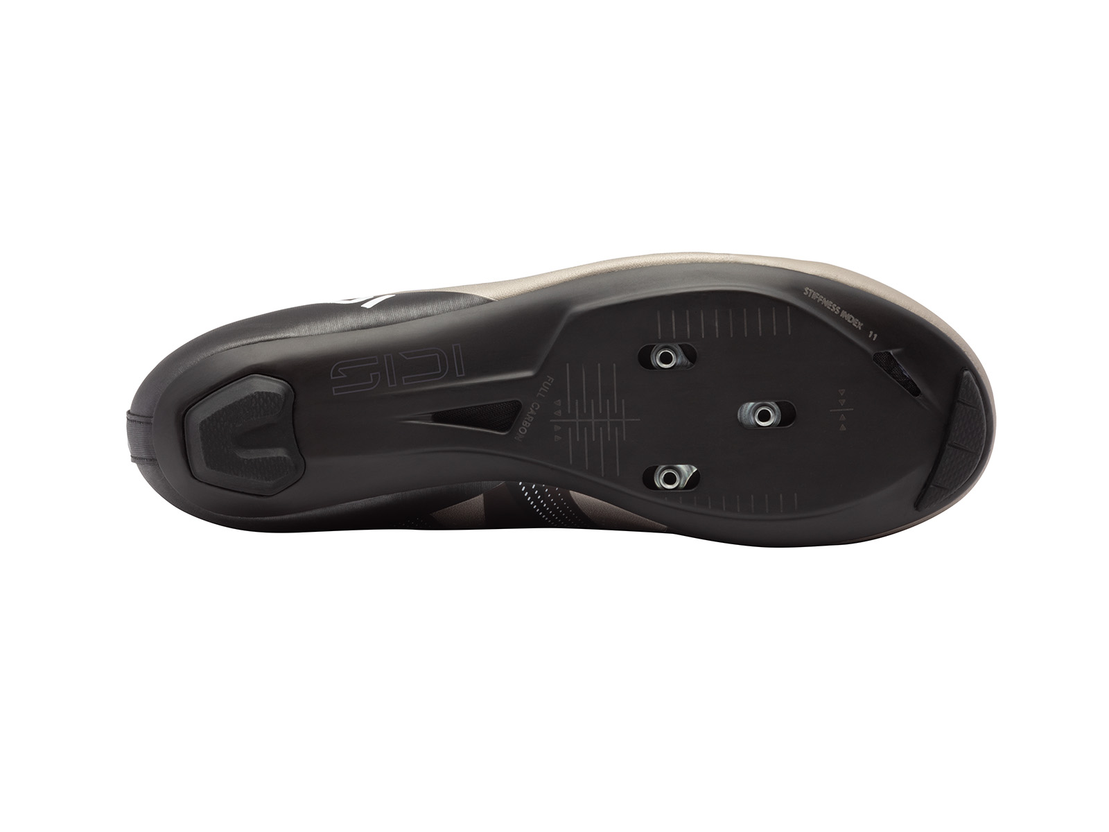 Całkowicie nowa, lżejsza podeszwa opracowana przez inżynierów Sidi. Wlot powietrza zlokalizowany z przodu, zapewnia przyjemne uczucie chłodu i bardzo dobrą wentylację stopy. Powietrze przepływa za pośrednictwem specjalnych kanałów zlokalizowanych w podeszwie i wylatuje tuż za śródstopiem. Specjalnie pod kątem nowej technologii Sidi zmodyfikowało część podeszwy i wkładkę w samym bucie. System air vent może być zamykany bądź otwierany w razie potrzeby. Przy tworzeniu podeszwy kierowano się uzyskaniem jak największej sztywności przy jak najmniejszym wpływie na krążenie w stopie. Umożliwiło to uzyskanie doskonałego transferu mocy na pedały, a z drugiej strony bardzo wysokiego komfortu jazdy. Podeszwa Vent Carbon zapewnia niewielki zakres elastyczności w okolicy palców, pozostając jednocześnie maksymalnie sztywną w okolicach śródstopia. Dla zwiększenia komfortu chodzenia na pięcie zastosowano wymienną podkładkę antypoślizgową. Vent Carbon jest kompatybilna z progami najlepszych marek pedałów. By ułatwić wymianę progów, podeszwa posiada nadrukowaną skalę w zakresie 10 mm w pionie i w poziomie. Dodatkowo wyposażona jest w gniazdo Look Memory. Sztywność podeszwy: ugięcie pod obciążeniem 50kg - 1,7mm.