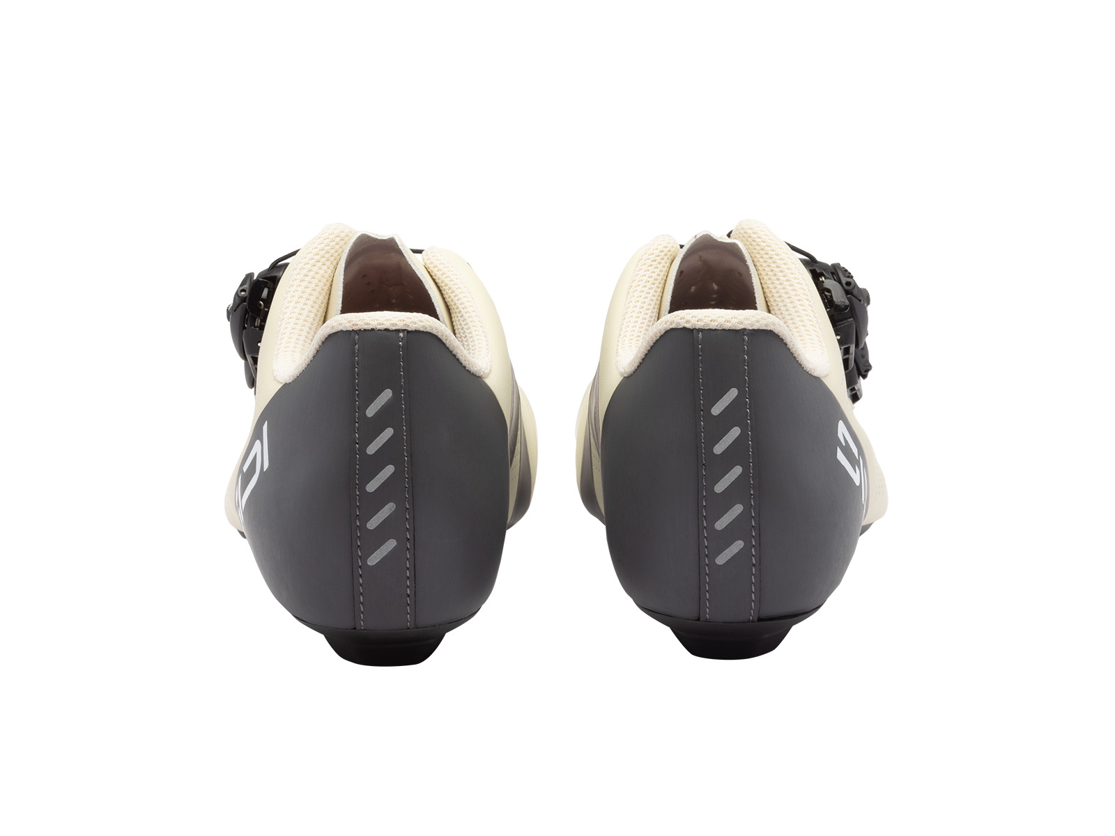 Kiedy ubierzesz swoje buty kolarskie stań na nich i unieś pięty. Jeżeli powstał luz pomiędzy butem a tyłem pięty to znaczy że obuwie jest za duże i będą niechlujnie pracować, szczególnie podczas dłuższej jazdy. Możesz to jednak poprawić właściwie ustawiając „Heel Retention Device”.