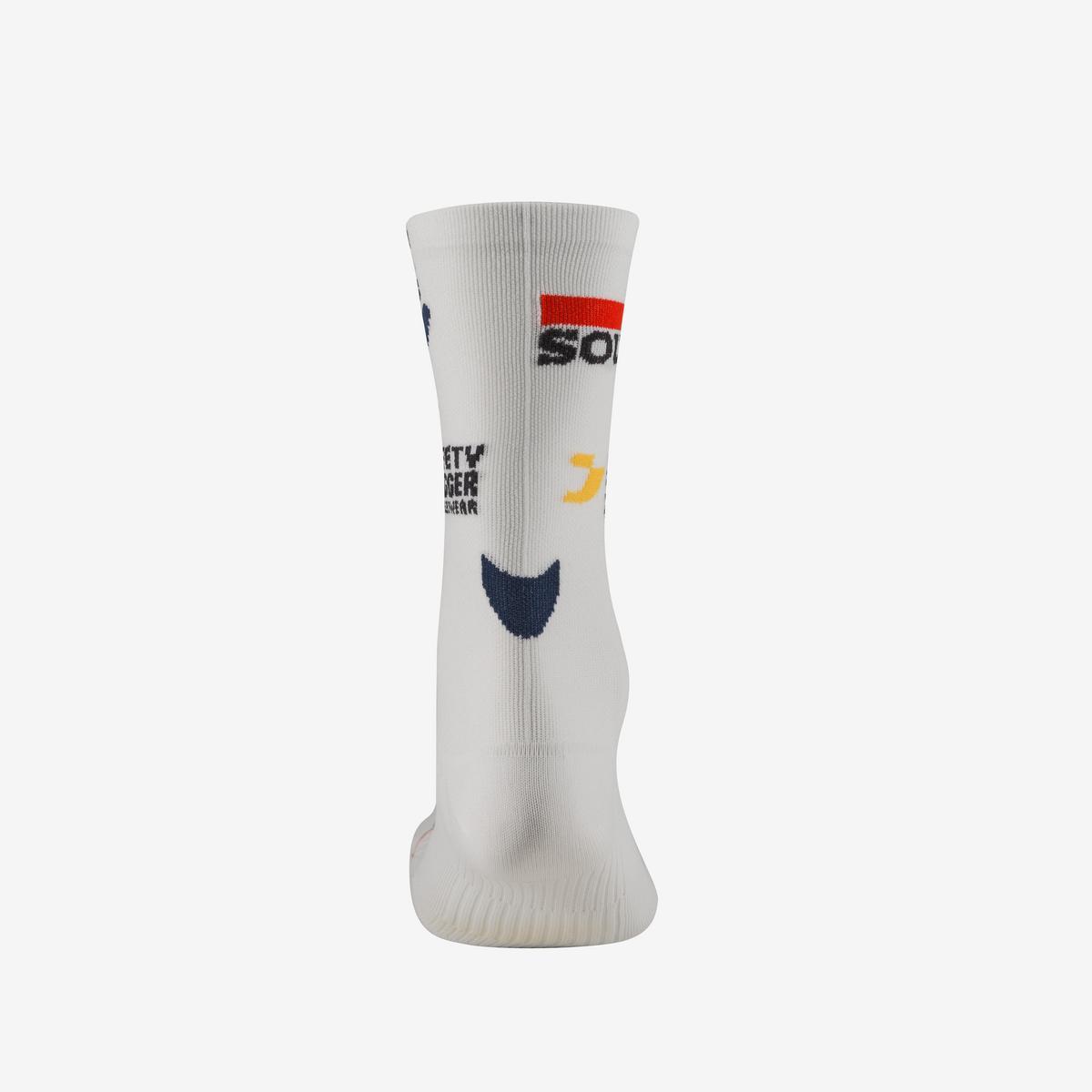 Skarpetki kolarskie wykonane z materiału Meryl® Skinlife oraz jonów srebra. Specjalna siateczka gwarantuje bardzo dobrą oddychalność i odprowadzanie potu na zewnątrz. Kompresyjny mankiet dla lepszej stabilizacji i poprawy ukrwienia. Asymetryczność dla zapewnienia jeszcze lepszego dopasowania. Dodatkowe przeszycie wspierające łuk stopy. Wysokość mankietu 18 cm.