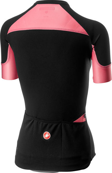 Koszulka wykonana z tkaniny ProSecco Strada Donna, dzięki której koszulka jest bardzo dobrze dopasowana oraz doskonale odprowadza wilgoć. Zamek YKK Vislon na całej długości. Trzy tylne kieszenie. Kolor: czarno-różowy, rozmiar S.