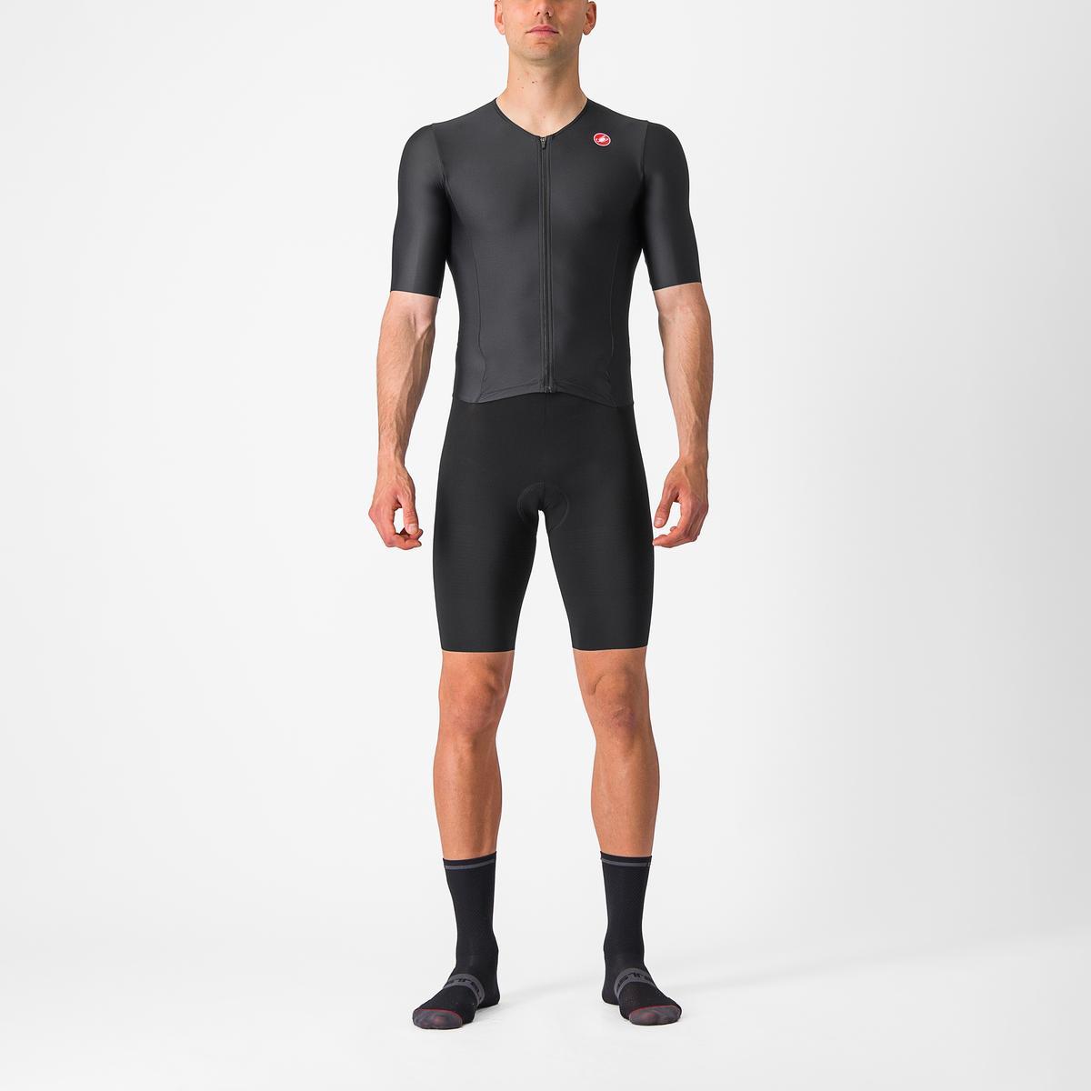Strój triathlonowy, zaprojektowany z myślą o maksymalnej aerodynamice i komforcie. Dzięki konstrukcji opartej na analizie CFD oraz specjalnie zaprojektowanemu, żebrowanemu materiałowi na rękawach i ramionach znacząco redukuje opór powietrza przy wyścigowych prędkościach. Wewnętrzna kieszeń na lód umieszczona przy szyi pomaga obniżyć temperaturę ciała w najgorętszych warunkach, a zgrzewane zakończenia rękawów zapewniają maksymalny komfort. Lekka tkanina użyta w korpusie stroju gwarantuje doskonałe chłodzenie, oddychalność i wygodę, a dwie tylne kieszenie są zaprojektowane tak, aby leżały płasko i zapobiegały podskakiwaniu odżywek podczas ruchu. Nogawki wykonane są z optymalizowanej tkaniny Forza2 Stretch, co zapewnia maksymalny komfort i przewagę aerodynamiczną, a silikonowe ściągacze utrzymują strój na miejscu. Wkładka KISS Tri gwarantuje wygodę podczas jazdy na rowerze i jest praktycznie niewyczuwalna podczas biegu. Waga: 233 g. Sugerowany zakres temperatur: 15-40 st. C.