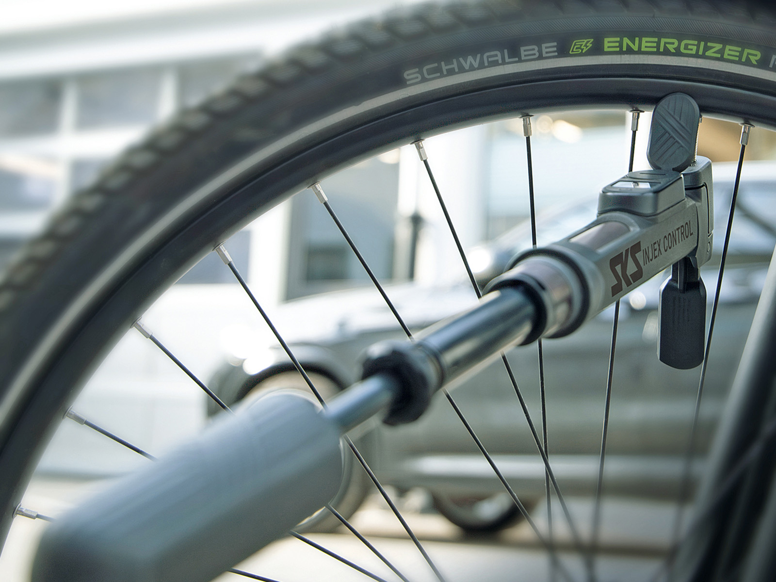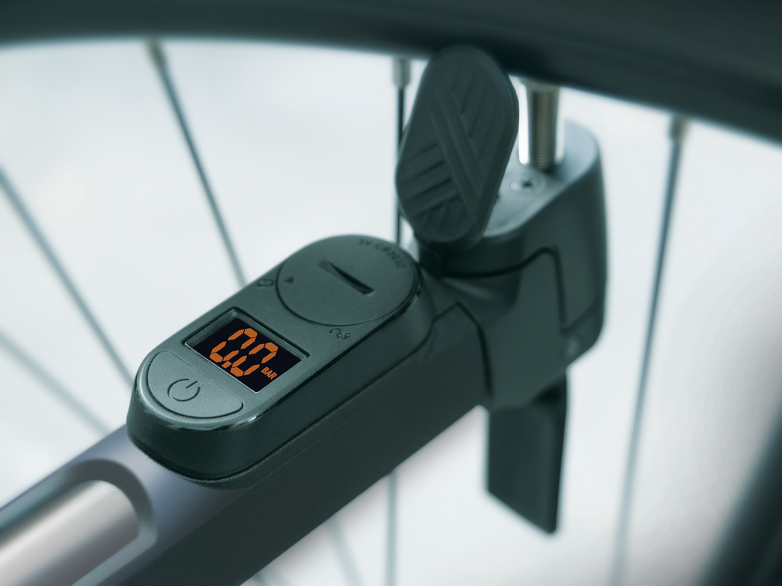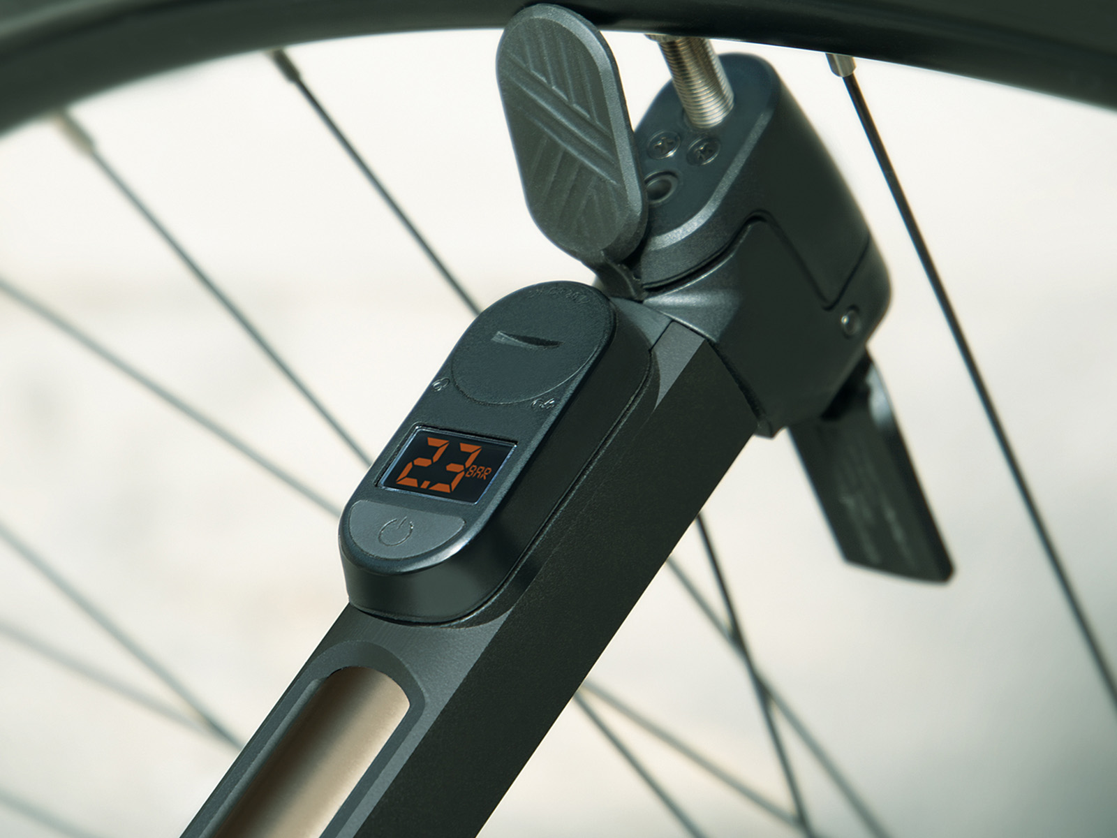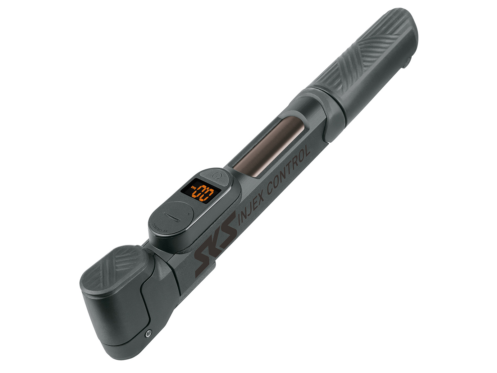 INJEX CONTROL DIGI jest wyposażona w cyfrowy, czytelny manometr, umożliwiający precyzyjny pomiar ciśnienia. Posiada również teksturowaną, dwukomponentową rękojeść. Rękojeść w kształcie litery T jest nachylona pod kątem 60 stopni, dzięki czemu przedramię i pompka tworzą linię prostą podczas pompowania. Zapewnia to ergonomiczną i wygodną obsługę. Głowica pompki, odchylona o 5 stopni, znacznie ułatwia pompowanie opon.