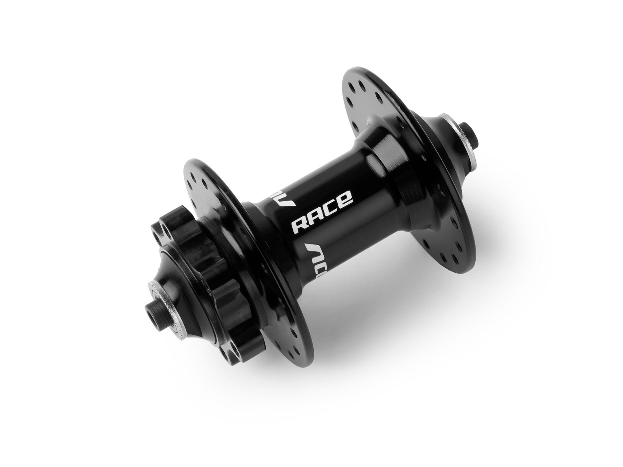 Piasty MTB pod hamulce tarczowe z korpusem wykonanym z aluminium. Oś wykonana z aluminium, bębenek ze stali Cr-Mo. Piasty wyposażone w dwa łożyska maszynowe (przód i tył).