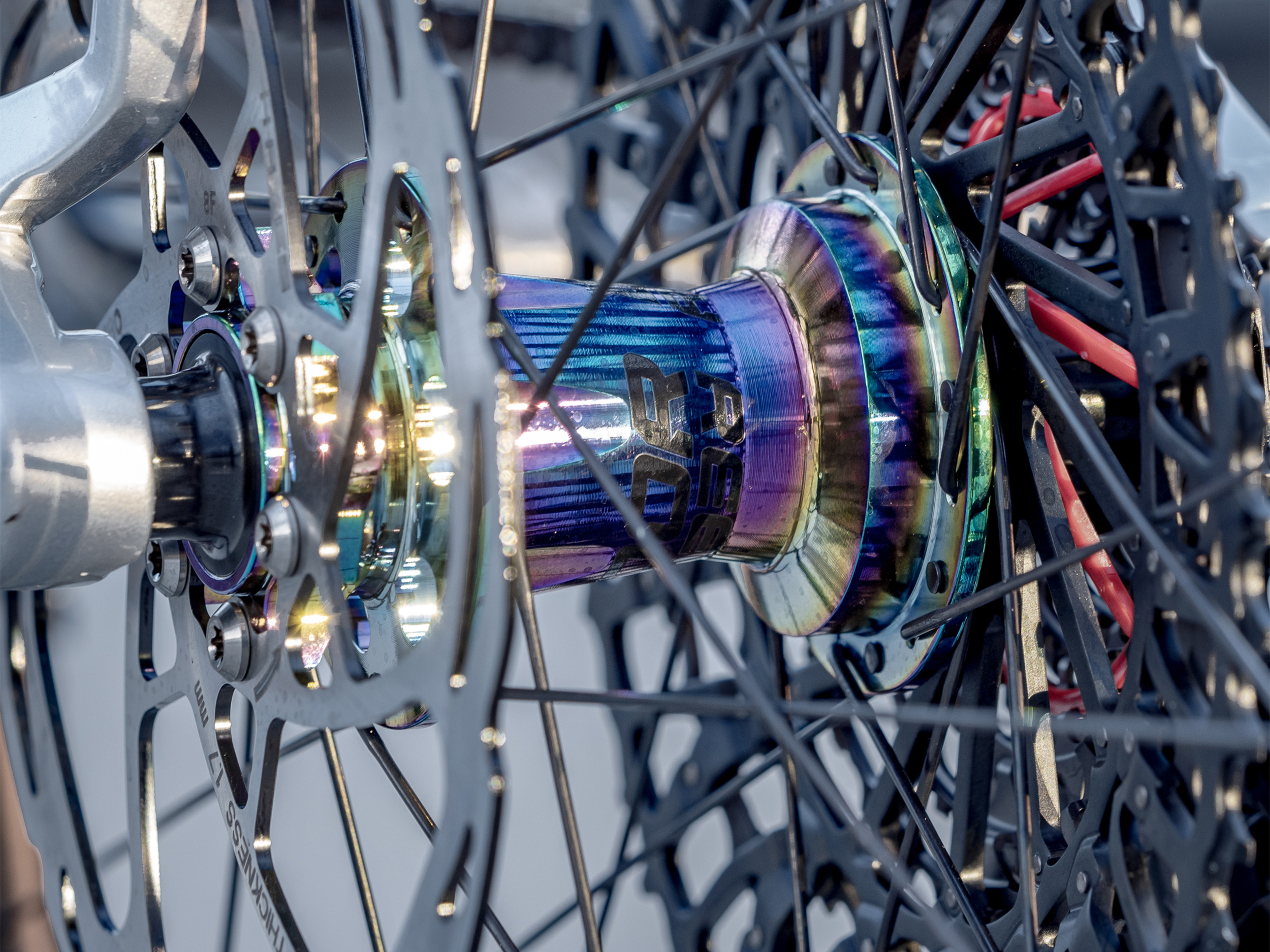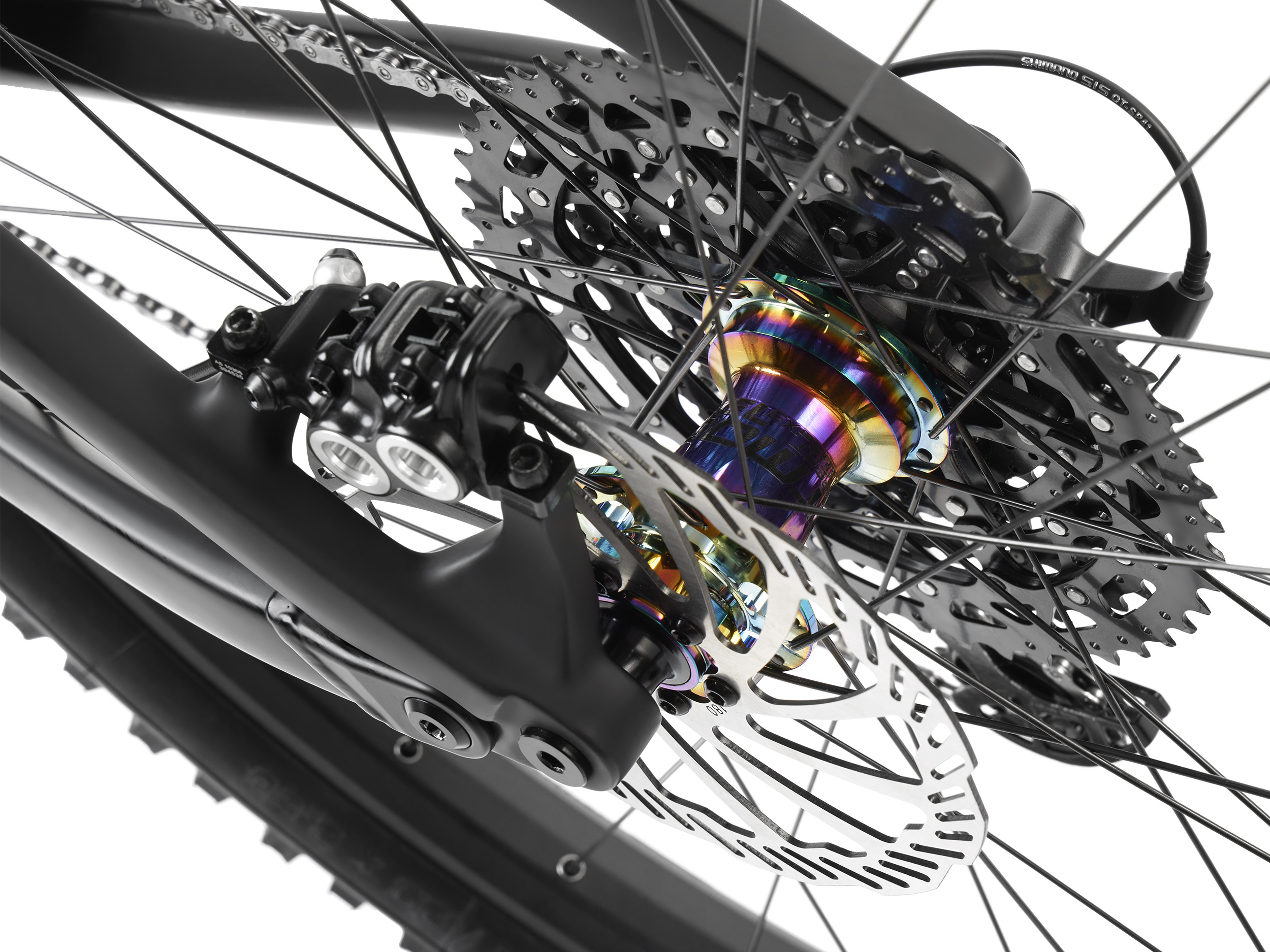 Oś: 15mm, utwardzane/anodowane aluminium 7075–T6 lub stal Cr-Mo