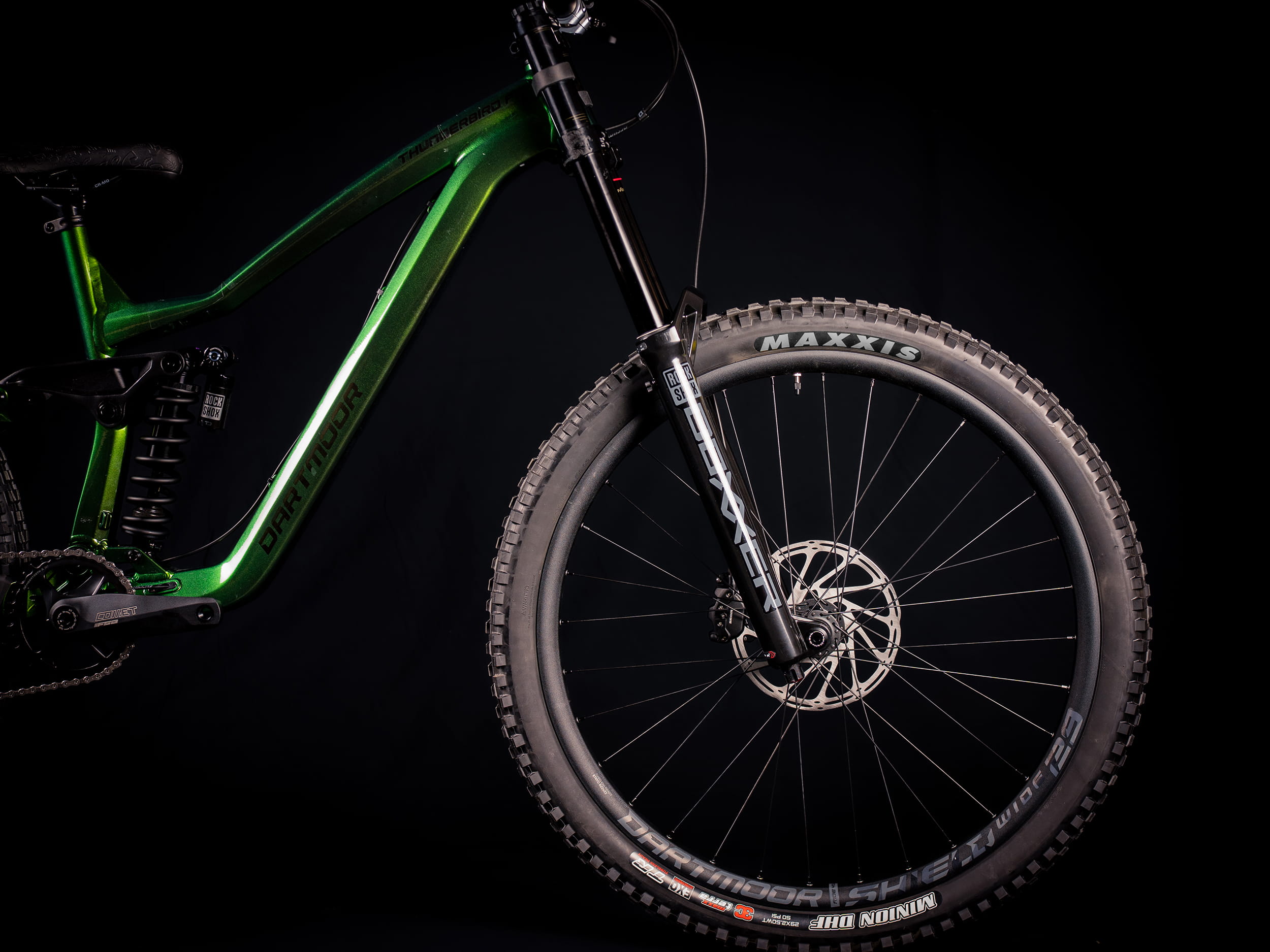 Obręcze Shield Wide połączone z piastami Reel Expert tworzą niezniszczalny zestaw kół. I co najważniejsze - JEST GŁOŚNO! Opony Maxxis Minion DHF 3C MaxxTerra EXO+ TR to sprawdzona konstrukcja zapewniająca maksymalną przyczepność i kontrolę na każdej nawierzchni.
