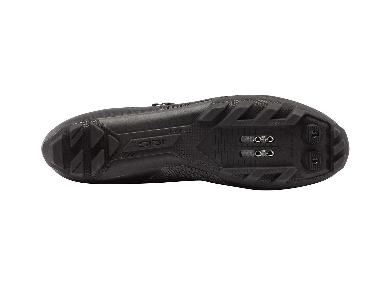 Lżejsza i jeszcze bardziej wydajna podeszwa MTB wykonana z nylonu z insertami poliuretanowymi. Kształt podeszwy oraz bieżnik zostały specjalnie zaprojektowane pod katem kolarstwa górskiego co pozwoliło na uzyskanie bardzo dobrej przyczepności, czyszczenia z błota oraz stabilizacji stopy. Centralnie umiejscowiony insert w kształcie loga Sidi posiada właściwości antypoślizgowe, co zostanie docenione w szczególności przez mniej doświadczonych zawodników. Czubek bieżnika podeszwy mocowany przy pomocy śrub umożliwia wymianę, gdy ulegnie on zużyciu lub zniszczeniu. Dodatkowo dokręcić można dwa kołki zwiększające przyczepność w trudnym, stromym, czy błotnistym terenie. Kołki sprzedawane są jako osobny element. Podeszwa SR17 zapewnia doskonałe połączenie sztywności dla efektywnego pedałowania oraz elastyczności do podchodzenia.