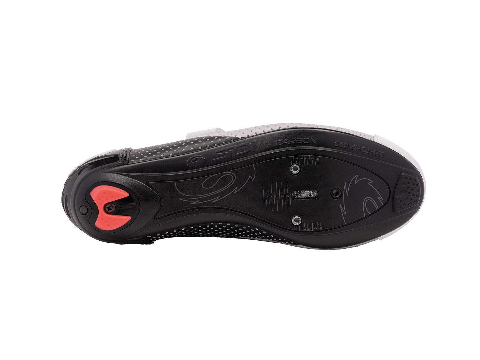 Całkowicie nowa, lżejsza podeszwa opracowana przez inżynierów Sidi. Wlot powietrza zlokalizowany z przodu, zapewnia przyjemne uczucie chłodu i bardzo dobrą wentylację stopy. Powietrze przepływa za pośrednictwem specjalnych kanałów zlokalizowanych w podeszwie i wylatuje tuż za śródstopiem. Specjalnie pod kątem nowej technologii Sidi zmodyfikowało część podeszwy i wkładkę w samym bucie. System air vent może być zamykany bądź otwierany w razie potrzeby. Przy tworzeniu podeszwy kierowano się uzyskaniem jak największej sztywności przy jak najmniejszym wpływie na krążenie w stopie. Umożliwiło to uzyskanie doskonałego transferu mocy na pedały, a z drugiej strony bardzo wysokiego komfortu jazdy. Podeszwa Vent Carbon zapewnia niewielki zakres elastyczności w okolicy palców, pozostając jednocześnie maksymalnie sztywną w okolicach śródstopia. Dla zwiększenia komfortu chodzenia na pięcie zastosowano wymienną podkładkę antypoślizgową. Vent Carbon jest kompatybilna z progami najlepszych marek pedałów. By ułatwić wymianę progów, podeszwa posiada nadrukowaną skalę w zakresie 10 mm w pionie i w poziomie. Dodatkowo wyposażona jest w gniazdo Look Memory. Sztywność podeszwy: ugięcie pod obciążeniem 50kg - 1,7mm.