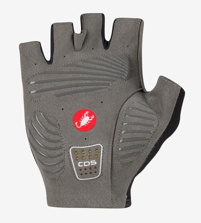 Rękawiczki kolarskie wykonane z elastycznej tkaniny z siateczki, zapewniają chłód i wygodę podczas jazdy. Umiarkowanie lekka wyściółka z niezbędnym umiejscowieniem. Silikonowe wstawki poprawiają chwyt dłoni. Castelli Damping System (CDS) chroni nerw środkowy. Łatwe zakładanie i zdejmowanie za pomocą mankietu o wysokiej rozciągliwości. Waga: 28 g para.
