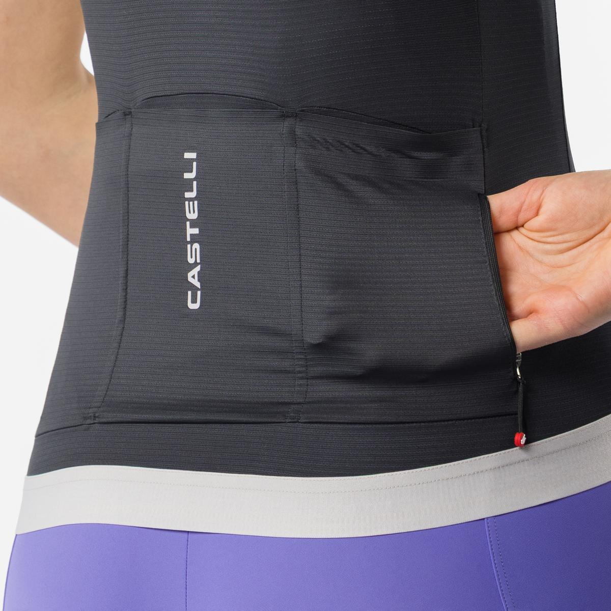 Najbardziej uniwersalna koszulka z oferty Castelli. Nie ważne jaką jazdę planujesz, koszulka Espresso zawsze będzie najlepszym wyborem. Wykonana z materiału Air_O Stretch dla najlepszej oddychalności, komfortu oraz dopasowania. Laserowo cięte rękawki. Trzy kieszonki tylne oraz czwarta zapinana na zamek. Zamek YKK Vislon na całej długości. Taśma kompresyjna z dodatkiem sylikonu wokół talii utrzymuje koszulkę na miejscu. Elementy odblaskowe dla poprawy bezpieczeństwa. Waga: 123 g (M). Sugerowany zakres temperatur: 18-35 st. C.