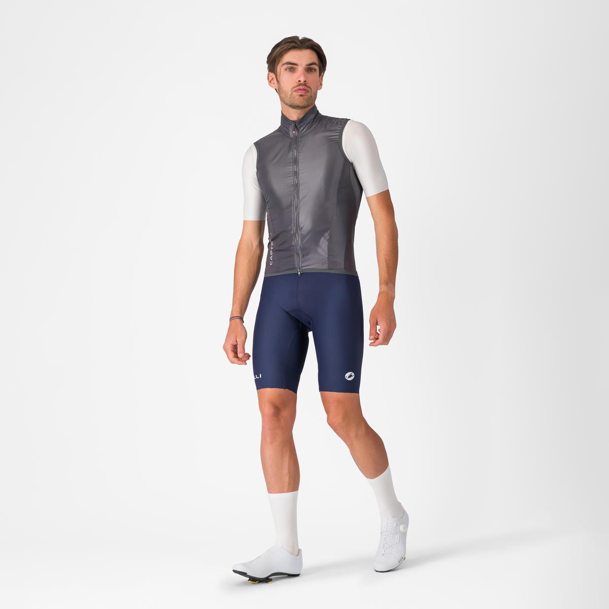 Super lekka, przeciwwiatrowa kamizelka kolarska. Przód wykonany z mikrofibry. Boki kurtki oraz wewnętrzna strona rękawów wykonana z elastycznej siateczki, dzięki czemu idealnie dopasowuje się do użytkownika. Zajmuje bardzo mało miejsca po złożeniu – bez problemu mieści się w kieszonce koszulki. Elementy odblaskowe dla poprawy bezpieczeństwa. Tylna kieszeń. Zamek YKK Vislon. Waga 88 g (L). Sugerowany przez Castelli zakres temteratur: 10-18 st. C.